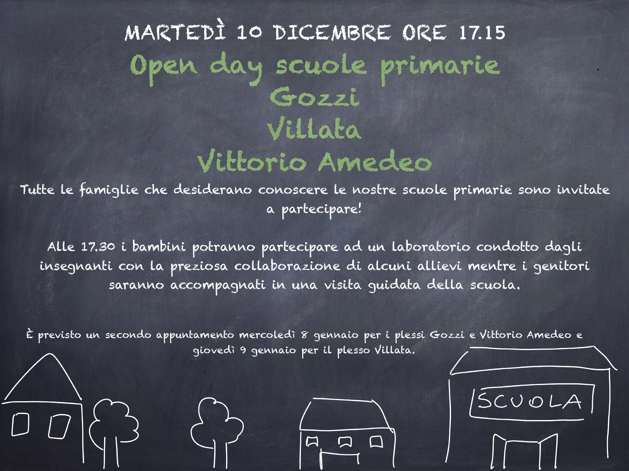La presentazione delle tre scuole primarie Gozzi, Villata e Vittorio Amedeo II è prevista il giorno giovedì 5 dicembre alle ore 18:00 nell'aula magna della nostra sede centrale (via Bardassano,5).